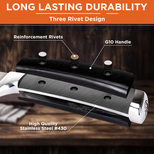 Experience the ultimate precision of the KD Chef Knife. Designed for cutting meat and equipped with a sharpener for long-lasting performance. this knife is a must-have for any kitchen. Packaged in a sleek gift box. it makes the perfect present for any cooking enthusiast.